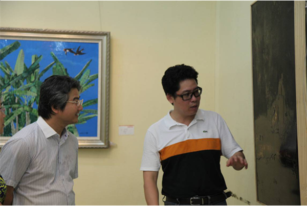 福建省青年美協(xié)主席湯志義和廈門蓮福集團董事長葉水省參觀畫展