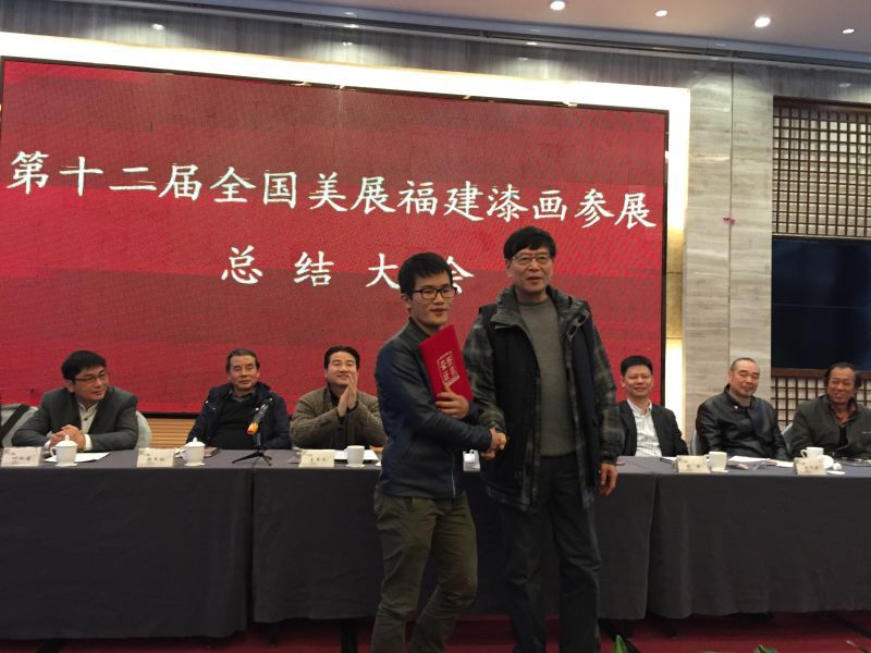 對此,陳金華主任作出總結(jié):福建在本屆漆畫展實現(xiàn)了3個突破:1、延續(xù)了福建漆畫60年來保持的領(lǐng)先地位;2、創(chuàng)造了第十一屆、第十二屆連續(xù)2屆入選作品數(shù)超過總數(shù)1/3的奇跡;3、首次實現(xiàn)在同一屆美展、同一個畫種上一個省份囊括金、銀、銅、優(yōu)秀獎。此外,本次漆畫展還反映了福建漆畫界2大特點:1、隊伍人數(shù)不斷壯大,后繼有人;2、隊伍明顯呈現(xiàn)年輕化趨勢,人才梯隊建設(shè)體系完整。