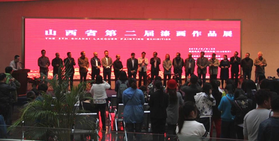 2015年5月9日上午10時,由山西省美術(shù)家協(xié)會主辦、山西省美術(shù)家協(xié)會漆畫藝委會承辦、太原美術(shù)館協(xié)辦的“山西省第二屆漆畫作品展”在太原美術(shù)館開幕。山西省文聯(lián)主席、山西省中國畫學會會長張根虎,山西省美術(shù)家協(xié)會主席、山西省畫院院長王學輝,秘書長李桂平,太原美術(shù)館館長王鼎,著名漆畫家、中國漆畫研究會會長喬十光,中國美術(shù)家協(xié)會漆畫藝委會副主任、廈門大學藝術(shù)學院教授陳金華,中國美術(shù)家協(xié)會漆畫藝委會秘書長、南京藝術(shù)學院設計學院教授李永清,中國美術(shù)家協(xié)會漆畫藝委會委員尹呈忠、張澤國、湯志義,中國工藝美術(shù)學會漆藝委員會秘書長周劍石、副會長梁遠,山西省美協(xié)漆畫藝委會主任黃山,山西省美術(shù)家協(xié)會副主席高鑫璽、張衛(wèi)東、周毅,山西省美協(xié)水彩畫藝委會主任陸賢能,山西省美協(xié)漆畫藝委會秘書長武貴文,俄羅斯華人藝術(shù)家協(xié)會副主席張宏偉,平遙縣文聯(lián)主席趙永平等出席了開幕式。黃山、王學輝、李永清分別發(fā)表講話,張根虎宣布展覽開幕,漆畫藝委會副主任劉維東主持了開幕式。