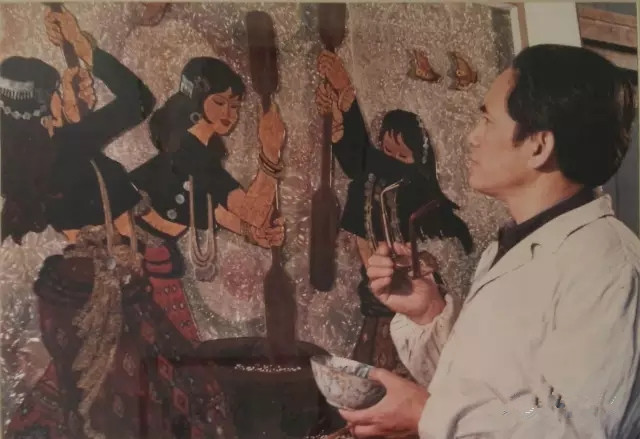 陳圣謀先生早年曾在江西工藝美術(shù)研究所工作,那時(shí)候受條件限制,作畫(huà)條件艱苦,各種設(shè)備和材料都相對(duì)奇缺,但他克服重重困難,在那段安靜的歲月里創(chuàng)作出了一大批佳作。陳圣謀先生對(duì)江西漆畫(huà)的事業(yè)嘔心瀝血,在進(jìn)入新世紀(jì)以后江西漆畫(huà)的發(fā)展開(kāi)始變得緩慢,陳圣謀先生看在眼里,他積極組織各種力量舉辦漆畫(huà)創(chuàng)作班,開(kāi)展研討會(huì)、舉辦展覽,為江西漆畫(huà)發(fā)展的未來(lái)以及人才的梯隊(duì)建設(shè)做了很多后續(xù)的準(zhǔn)備。