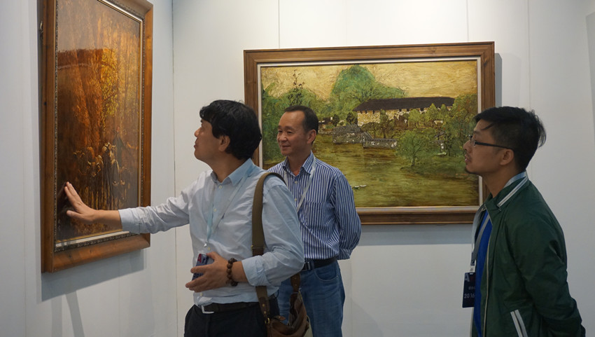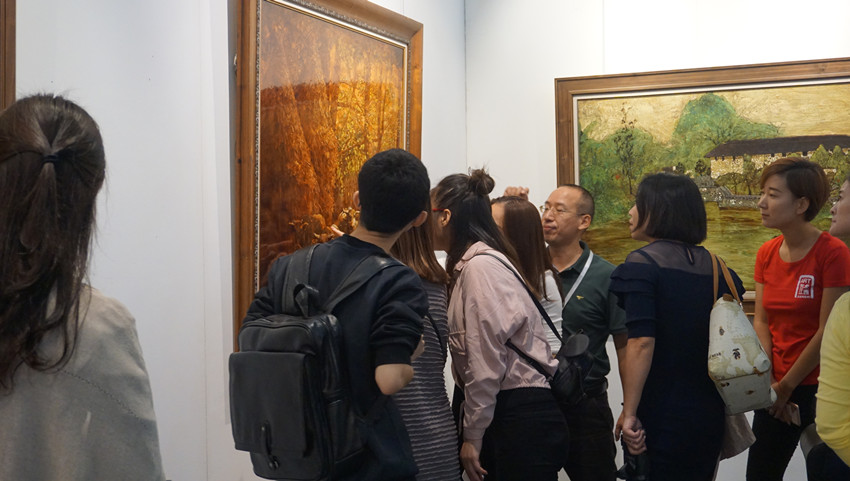蓮福文化攜帶多位當代名家的漆畫作品參與此次藝博會,展現(xiàn)了多元化的不同藝術(shù)形式,漆畫本身的觀澤、質(zhì)感、肌理所產(chǎn)生的神秘藝術(shù)魅力吸引了大量的市民駐足欣賞。