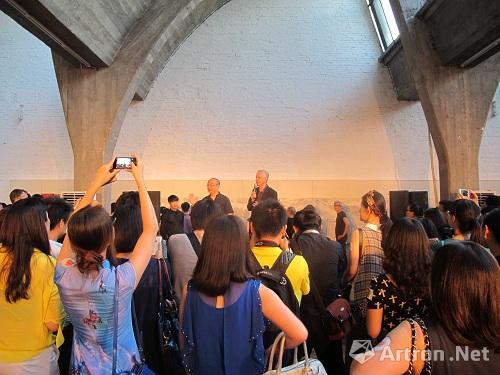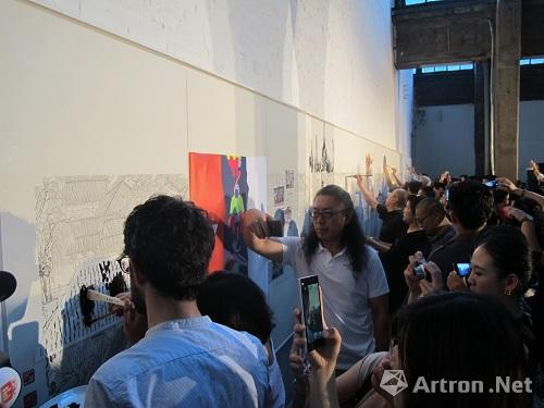 2014年6月28日下午6點(diǎn)30分,“第二屆中意雙年展”VIP預(yù)展在798藝術(shù)區(qū)藝術(shù)工廠開幕。開幕當(dāng)天,意大利方策展人桑德羅•奧蘭迪與中方策展團(tuán)隊(duì),各國的大使等都前來參加了開幕式。開幕式分為幾部分,首先,在藝術(shù)工廠,發(fā)生了一場行為藝術(shù),由十多位藝術(shù)家及建筑師共同在一幅繪制幾個(gè)月而成的《春明上河圖》上再創(chuàng)作,此次行為很好地回應(yīng)了本屆中意雙年展的主題“記憶”,因?yàn)檫@個(gè)行為連接起了過去與現(xiàn)在;之后,所有嘉賓驅(qū)車來到展覽的第二主場:北京市塑料三廠文化園,參加活動(dòng)晚宴,并觀看在這兒的作品:以年輕人為主的面向未來的“記憶”。
