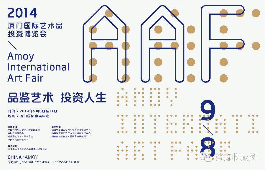 作為第十八屆中國(guó)國(guó)際投資貿(mào)易洽談會(huì)的文化類(lèi)主戰(zhàn)場(chǎng),首屆廈門(mén)國(guó)際藝術(shù)品投資博覽會(huì)(簡(jiǎn)稱“AAF”)將于2014年9月8日至11日在廈門(mén)舉辦。AAF以“價(jià)值的呈現(xiàn)”為主題,邀請(qǐng)國(guó)內(nèi)頂級(jí)拍賣(mài)行、海內(nèi)外著名畫(huà)廊、藝術(shù)品博物館、美術(shù)館等,在博覽會(huì)上展出近千件各類(lèi)傳統(tǒng)及當(dāng)代藝術(shù)品。主辦方力求通過(guò)挖掘藝術(shù)品價(jià)值洼地,改變藝術(shù)品市場(chǎng)南弱北強(qiáng)的態(tài)勢(shì),使其成為中國(guó)南方第一大藝術(shù)博覽會(huì)。