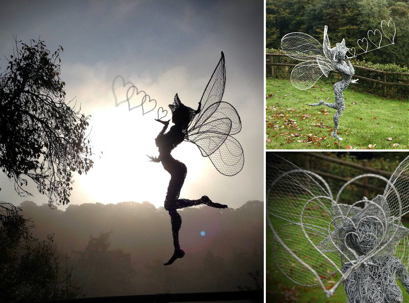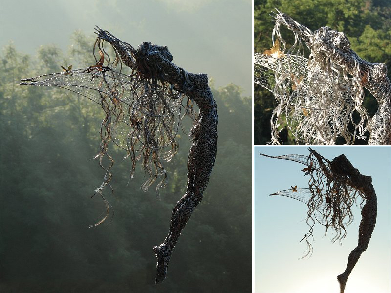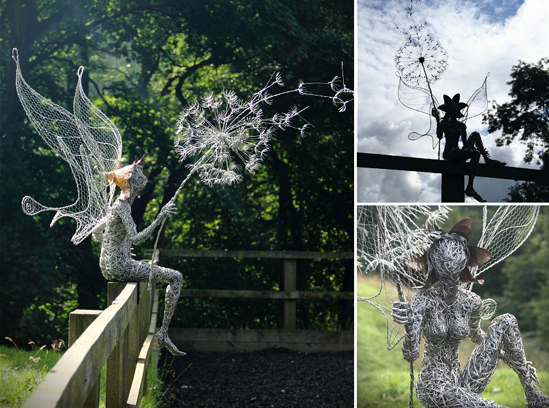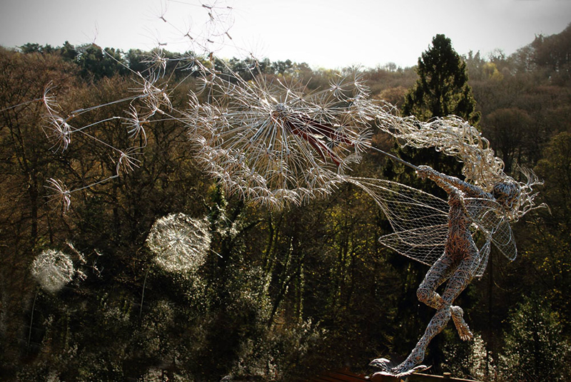 英國(guó)藝術(shù)家 Robin Wight 使用不銹鋼絲創(chuàng)作出的雕塑簡(jiǎn)直讓人大吃一驚!他塑造了有翅膀的精靈拿著飛翔的蒲公英在風(fēng)中飛舞。迷人的造型,飛舞中扭動(dòng)的身軀,正被風(fēng)吹散的蒲公英,無不透著生命力,讓它看起來栩栩如生。